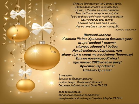 З РІЗДВОМ ХРИСТОВИМ ТА НОВИМ 2026 РОКОМ!