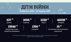 Найбільше постраждало дітей у таких областях: Донецькій – 645, Харківській – 495, Херсонській – 214, Дніпропетровській – 242, Київській – 146, Запорізькій – 185, Миколаївській – 120, Сумській – 142.