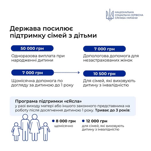 Зокрема, рішення передбачає запровадження щомісячної допомоги по догляду за дитиною до 1 року та виплату в межах програми «єЯсла», яка покликана створити сучасні умови для поєднання батьківства з професійним життям.