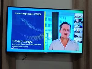 З вітальними словами також звернулися міжнародні партнери Профспілки, зокрема Генеральний секретар Інтернаціоналу Освіти Девід Едвардс, директор Європейського комітету профспілок освіти Елмер Еверс та Голова Профспілки освітян Німеччини (GEW) Майке Фіннерн.