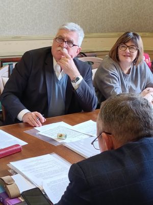 Засідання відкрив голова обласної організації Профспілки Мар’ян Калин і виконав почесну місію — вручив подяки від N-ської військової частини лідерам Об'єднаних територіальних організацій профспілки Мостиської міської, Шегинівської сільської територіальних громад Олександрі Погуц та Жовківської, Рава-Руської міських, Куликівської селищної, Добросинсько-Магерівської сільської територіальних громад Ірині Бродик за допомогу особовому складу, підтримання бойового духу захисників державного суверенітету і територіальної цілісності України. Такі ж подяки отримали директор Галина Федюк та колектив Гійченського ЗЗСО І-ІІІ ст. Рава-Руської міської ради, директор Юлія Мусійовська та колектив Волицького НВК Шегинівської сільської ради, директор Оксана Мудрагеля та колектив гімназії с. Мишлятичі Шегинівської сільської ради та директор Михайло Сидорак та колектив ліцею № 1 Мостиської міської ради.