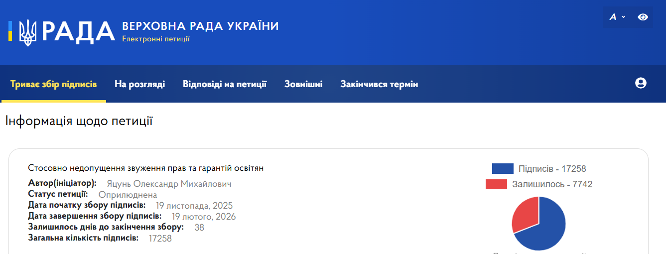 Петиція – не лише механізм звернення, а й чіткий барометр згуртованості освітянської спільноти, на який зважає влада під час ухвалення рішень. Кількість підписів демонструє нашу єдність і готовність відстоювати права.