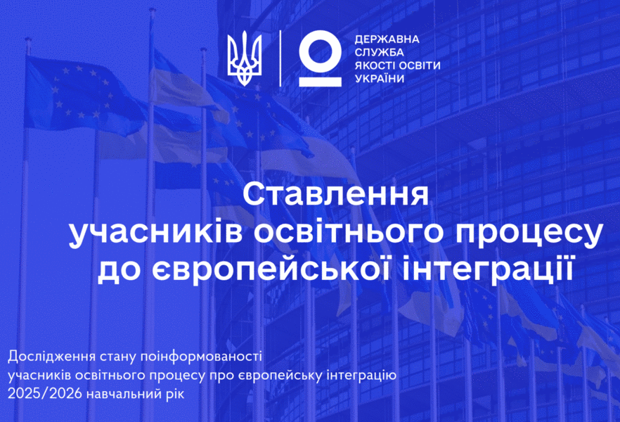 Державна служба якості освіти України оприлюднила результати дослідження щодо рівня поінформованості, ставлення та очікувань учасників освітнього процесу стосовно європейської інтеграції України.