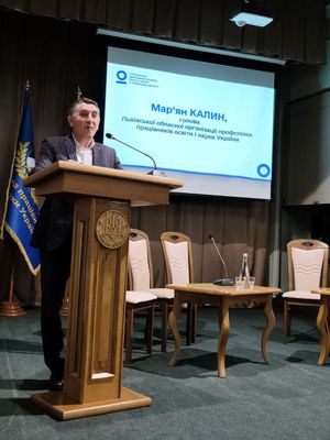Голова Львівської обласної організації профспілки працівників освіти і науки України Мар’ян КАЛИН наголосив на необхідності системної підтримки освітян, створення сприятливого освітнього середовища для професійного розвитку та мотивації вчителів, що є фундаментальною умовою для зростання майстерності і запорукою підвищення не тільки якості освіти, але й заробітної плати.