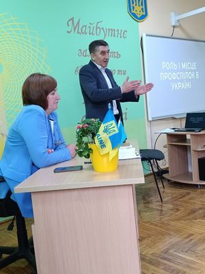 На ділову професійну розмову до профлідерів первинок прибули - голова Львівської обласної організації профспілки працівників освіти і науки України Марʼян Калин та заступниця завідувача відділу організаційної та інформаційної роботи Ірина Корчинська.
