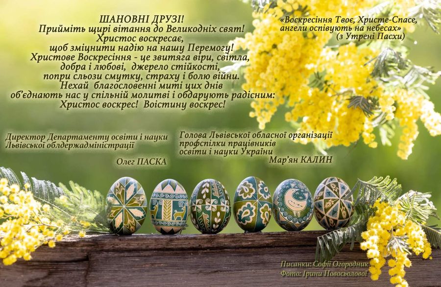 Прийміть щирі вітання до Великодніх свят!